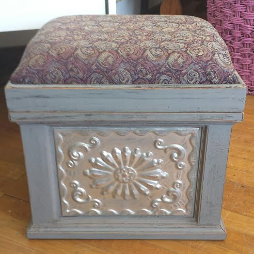 Painted ottoman footstool in shabby chic gray-$59.00